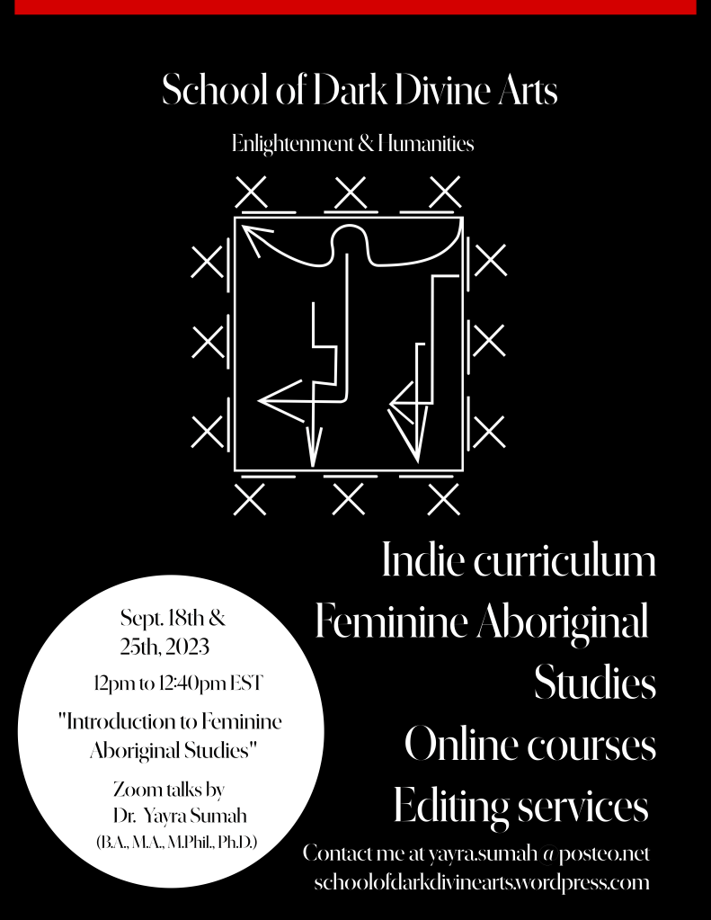School of Dark Divine Arts teaches Feminine Aboriginal Studies. This is a new field in the study of female melanoids as the original inhabitants of the land. As a researcher and writer with scholarly and academic knowledge, I am bringing you a unique perspective on the feminine spiritual practices of first peoples. This field is not to be confused with Afro-Studies, African Studies, Africana Studies, African-American Studies, Black Studies, Women’s, Gender and Sexuality or Womanist Studies. This is an ancestrally-led knowledge emerging in the era of digitality.